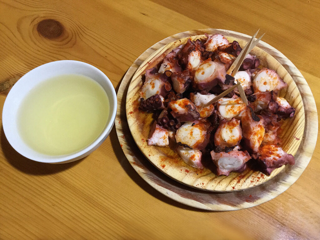 Eine galicische, kulinarische Spezialität ist ‚Pulpo’ – gekochter Krake mit Öl, Salz und Paprika. Gegessen wird Pulpo in ‚Pulperias’, die sich auf die Zubereitung dieser Speise spezialisiert haben.