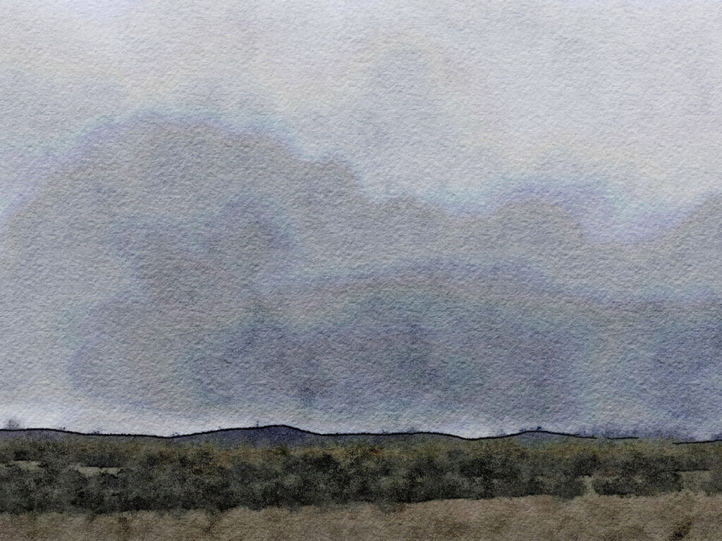 Heute – nach einem selbst zubereiteten, herzhaftem Frühstück mit Käse und Schinken in der Herbergsküche – hatte ich viel Energie und bin ohne grosse Mühe bis in das winzige Bergdorf Foncebadón gelaufen, das nur noch 2 km und knapp 100 Höhenmeter vom Pass entfernt ist. Bis dorthin ist es morgen ein Spaziergang. Der Himmel war heute den ganzen Tag wolkenverhangen und düster, und gelegentlich fielen ein paar Tropfen Regen. In meinem heutigen Bild habe ich versucht, das einzufangen. Die Berge oberhalb von Foncebadon waren mit Schnee bedeckt. Als ich das letzte Mal dort oben war (Oktober 2012), bin ich morgens im Schnee in Richtung Pass aufgebrochen.