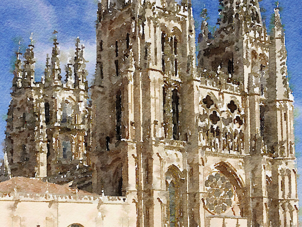Mein heutiges Bild ist bei meinem Spaziergang durch die Altstadt von Burgos entstanden. Es zeigt einen Teil der Kathedrale, die seit 1984 zum UNESCO-Weltkulturerbe gehört. Ich habe leider keinen Ort gefunden, von dem ich sie ganz aufs Bild bekomme; die Altstadthäuser stehen einfach zu nahe um sie herum.