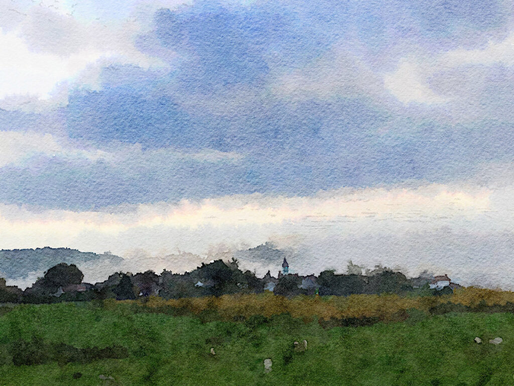 Entgegen der Wettervorhersage war heute wieder prächtiges Spätsommerwetter mit angenehmen Temperaturen. Die Etappe begann in Aroue und endete nach 25 km in Ostabat-Asme. Sie führte mich über die Hügel des Pyrenäenvorlands mit fantastischen Ausblicken auf die Bergkette im Süden.