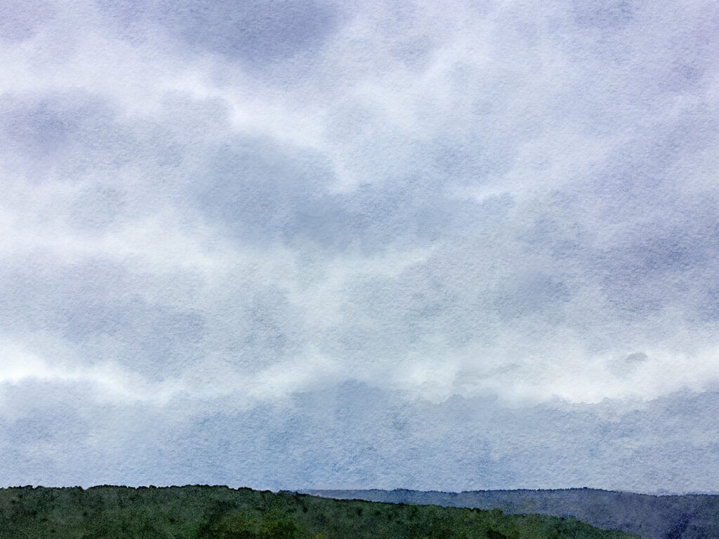 Mein Bild zeigt die graue, wolkenverhangene Welt, durch die ich dann gewandert bin.