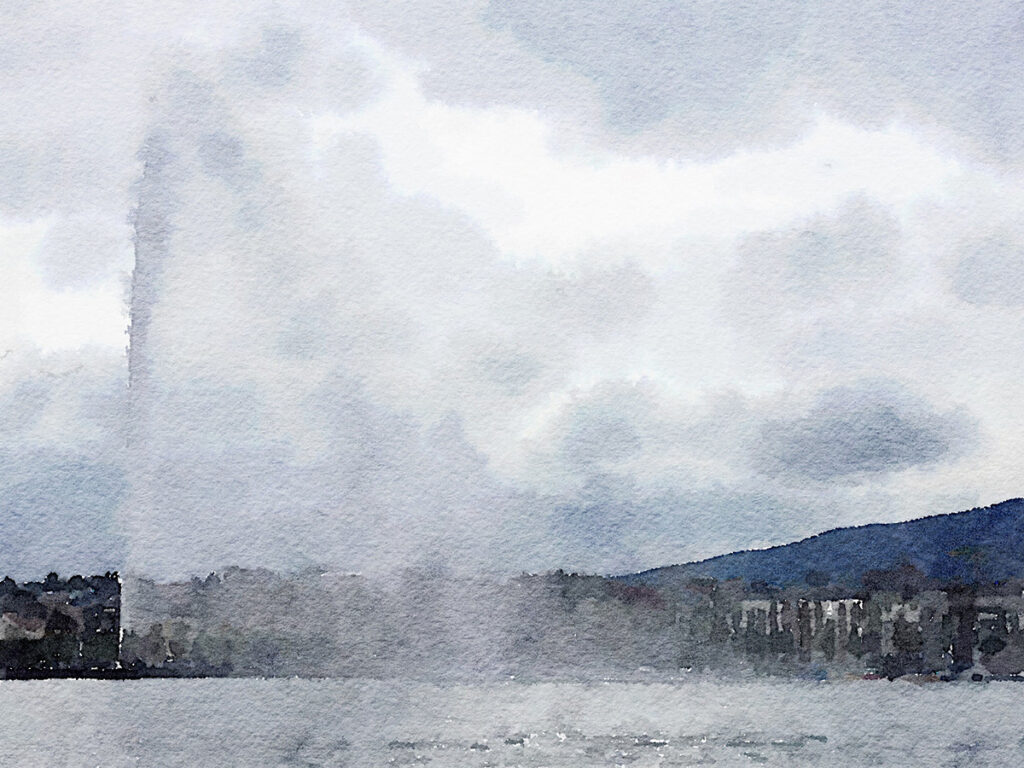 Ich habe heute einen Ruhetag eingelegt. Ich habe ausgeschlafen, gemütlich gefrühstückt und zwei grosse Schalen Schwarztee getrunken. Den Tag habe ich in Genf verbummelt, habe mal hier und mal dort gesessen und den Menschen zugeschaut. Ich habe mehrere grosse Kirchen besichtigt, und natürlich auch die berühmte Wasserfontäne fotografiert.